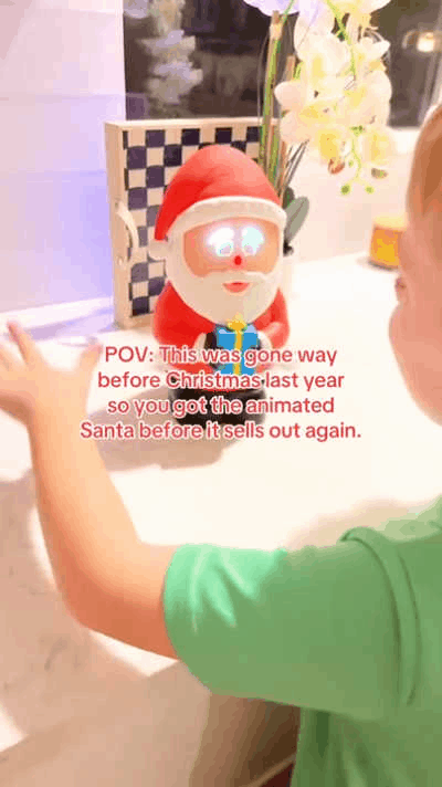 Animated Expressions: Eyes blink and mouth moves for a lifelike, festive touch. 🥰